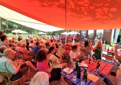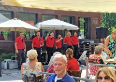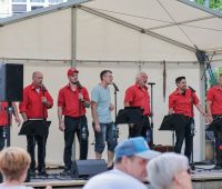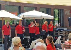 Im Juli waren wir beim Gelbachtal-Tag in Bladernheim aktiv und sangen 4 Stunden bei fast tropischen Temparaturen und unzähligen Bremsen. Der Veranstalter hatte zwar ein Zelt als Schutz zur Verfügung gestellt, aber wir kamen doch ganz schön ins Schwitzen, auch wenn wir kein Fahrrad gefahren sind. Uns hat es allen mal wieder Spaß gemacht und der ein oder andere Radler fing sogar an zu tanzen auf unsere Songs.